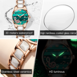 OLEVS 3605 Luxury Ceramic Quartz women wristwatch- Green