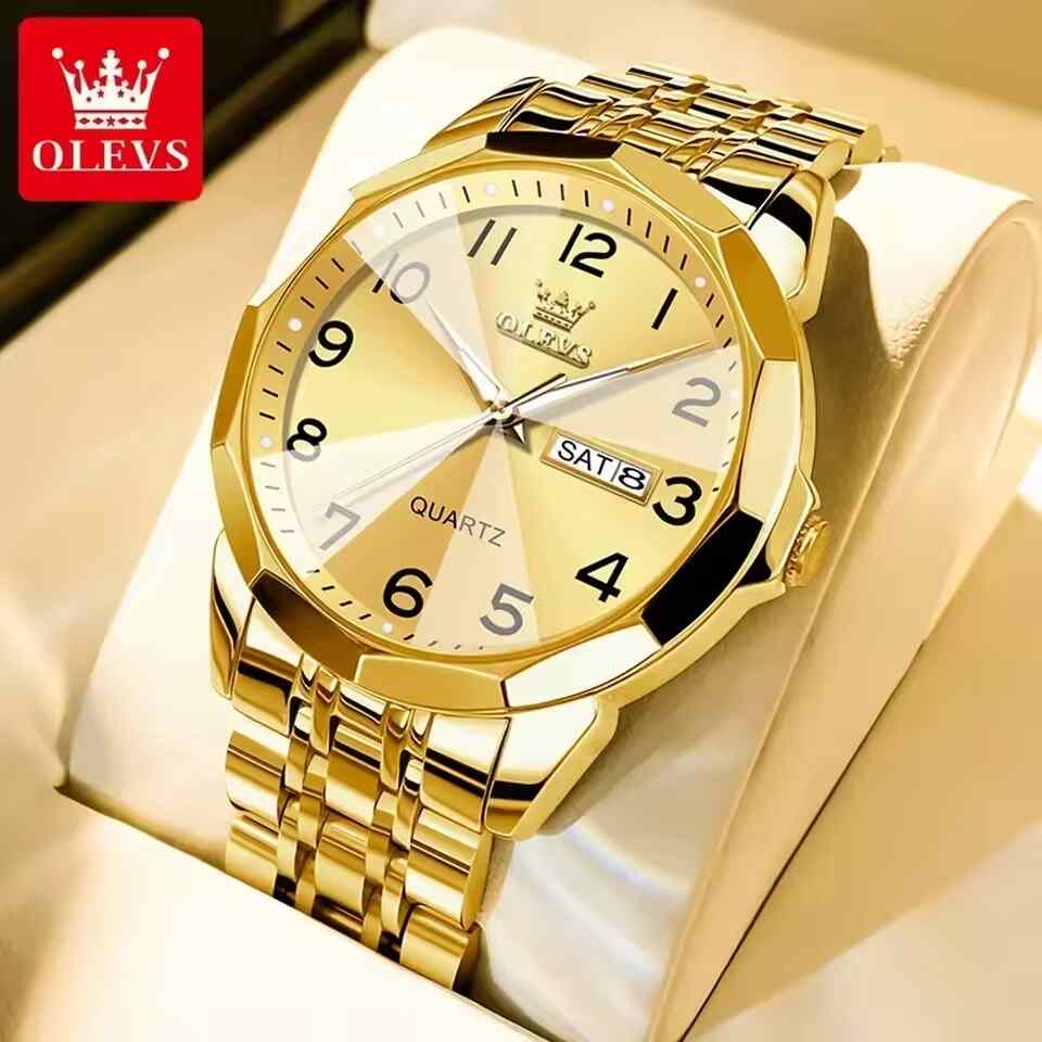 Olevs 9931 New luxury Fashion stainless steel imported quartz movement wrist-watch for Men- Gold new