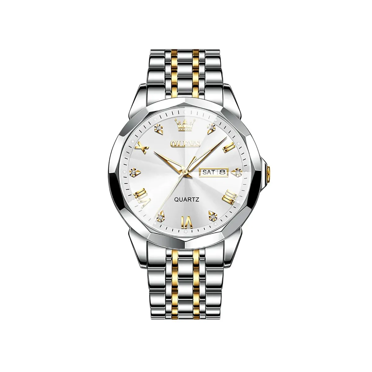Olevs 9931 New luxury Fashion stainless steel imported quartz movement wrist-watch for Men- Silver Gold