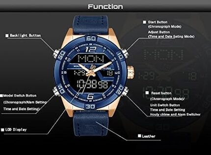 NAVIFORCE 9160 stylish Leather Strap Luminous analog digital display sports watch for Men’s- Black