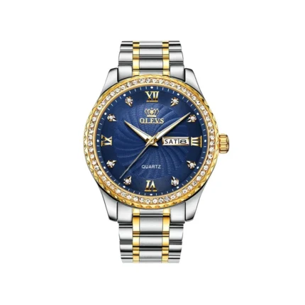 OLEVS 5565 Stainless steel quartz Luminous Business wristwatch for Men’s – Silver Gold & Blue