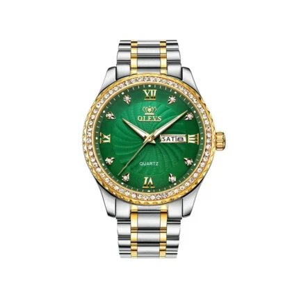 OLEVS 5565 Stainless steel quartz Luminous Business wristwatch for Men’s – Silver Gold & Green